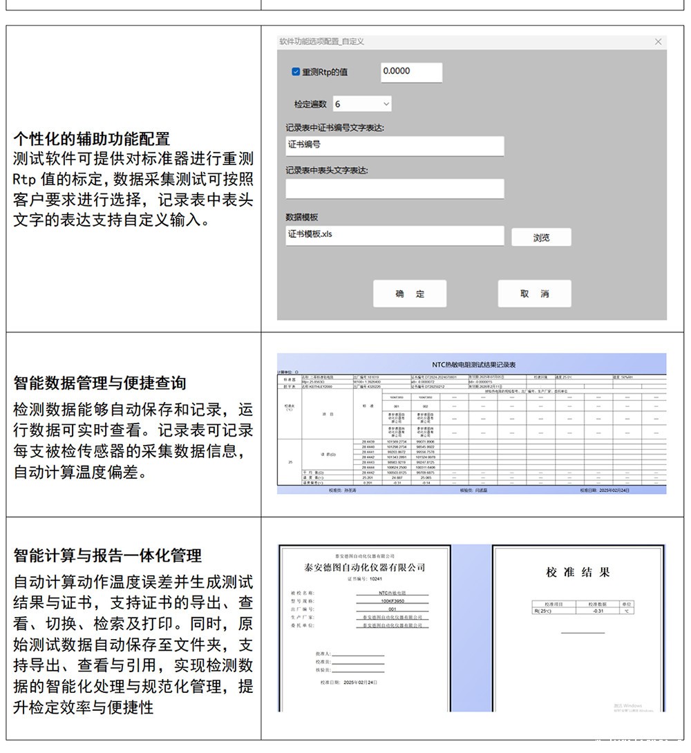 DTZ-NTC型 热敏电阻自动检测系统以 创 新 科技重塑热敏电阻测试体验,融合多通道低电势扫描器、数字万用表、计算机专业软件及恒温油(水)槽,打造全流程无人化检测平台。通过智能算法优化,系统可适配各类热敏电阻参数,覆盖广域工作场景需求,实现从数据采集到质量分析的全周期自动化管理。内置工业级数据分析模块,支持标准化报告生成与远程监控功能,以高可靠性与灵活扩展性,为传感器校准、批量验证及质量管控提供解决方案,助力智能制造时代的产品准确度升级。