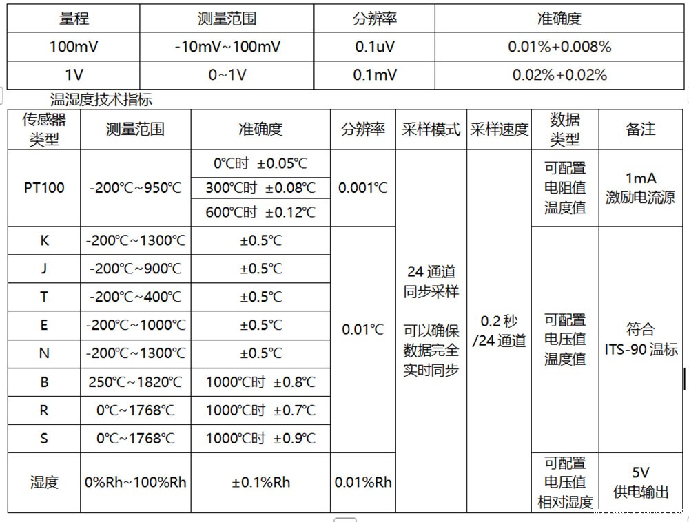 2、 24通道均可独立配置为热电偶、铂电阻、湿度传感器和模拟量输入模式